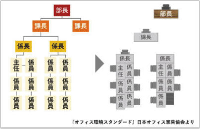 今や管理職が前に座るレイアウトは、社員に圧を与えるため 導入されていない企業も多々ある。時代なんだね。