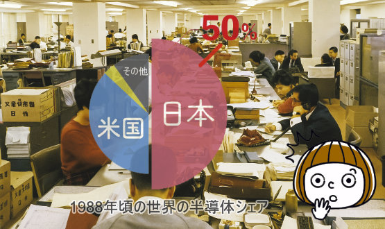 1980年代 中頃まで 日本企業の DRAM(Dynamic Random Access Memory)の猛烈な進出があった。それまで半導体市場をアメリカが15年間ほど、特にインテルが独占していた。