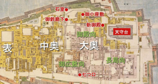 ネットの至る所にアップされているこの図で大奥の位置が分かる。