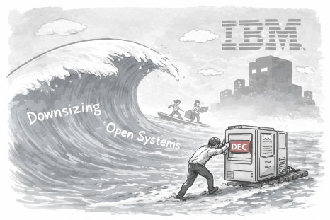 だからこそ、波に乗って下位機種やダウンサイジングやオープンシステムに注力していけば良かったのに、こともあろうにVAX9000なる上位機種を投入する。周囲はIBMへの挑戦とも言われたもんだ。