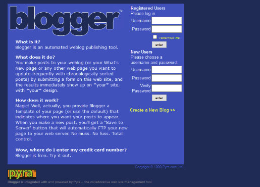 Blogger 1999年 (Web Design Museum)